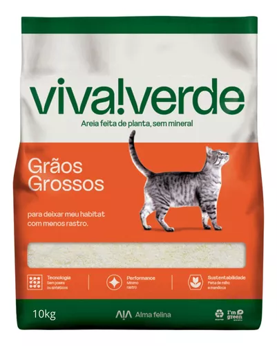 Essa é a areia preferida do Encantador de Gatos, Jackson Galaxy, o mais famoso especialista em comportamento de gatos, apresentador do Animal Planet e autor de livros que são best-sellers em todo o mundo. A Areia Higiênica petfive Viva Verde Vida Descomplicada para Gatos grossos possui fórmula natural forma torrão firme e garante eliminação de odor, praticidade, eficiência e zero desperdício. A Viva Verde! Vida Descomplicada é produzida com grãos de tamanhos diferenciados, o que ajuda a diminuir o rastro. Usamos apenas produtos naturais cuja extração não gera impacto ambiental negativo. Sua compra ainda ajuda a combater o desmatamento, a partir de nossa parceria com o Rainforest Trust. A ausência de pó e químicos também melhora a qualidade de vida de seu amigo de quatro patas.