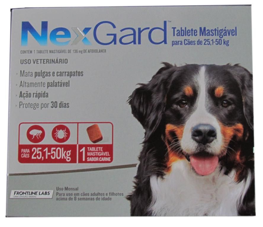 Antipulgas e Carrapatos NexGard 136 mg para Cães de 25,1 a 50 Kg - 1 Tablete Avulso