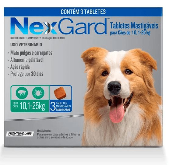 - Proteção mensal contra pulgas e carrapatos;