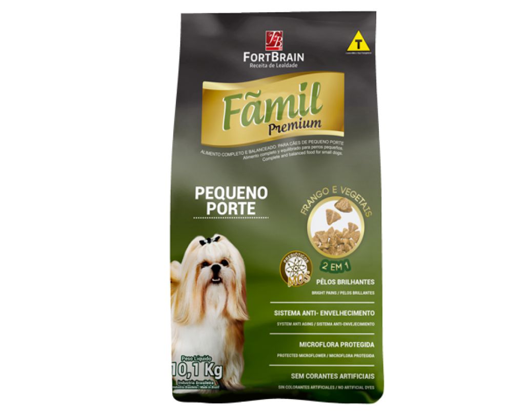 Fãmil Premium Pequeno Porte tem o sabor de frango e vegetais e NÃO POSSUI CORANTES ARTIFICIAIS, oferece ao seu animal de estimação pelos brilhantes, proteção imunológica, um sistema antienvelhecimento e um Microflora Protegida.