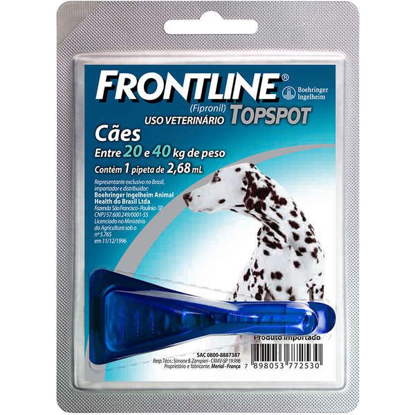 Uma pipeta de 2,68 ml /cão com 20 a 40 kg de peso.