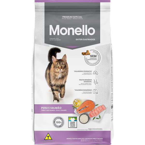 Monello Cat Castrados é um alimento Premium Especial desenvolvido para atender as necessidades nutricionais de gatos adultos castrados. Gatos castrados tornan-se menos ativos, aumentando o risco de sobrepeso. Monello Cat Castrados auxilia no controle do peso pois, sua composição contém nivel energético reduzido, além de conter Carnitna, elementos que contribuem para manutenção saudável do peso dos felinos. Isento de corantes e aromatizantes artificiais, o alimento conta com a adição de Taurina, que atua na saúde da visão e do coração, além de proporcionar cuidados especiais no auxilio da prevenção de cálculos urinários.