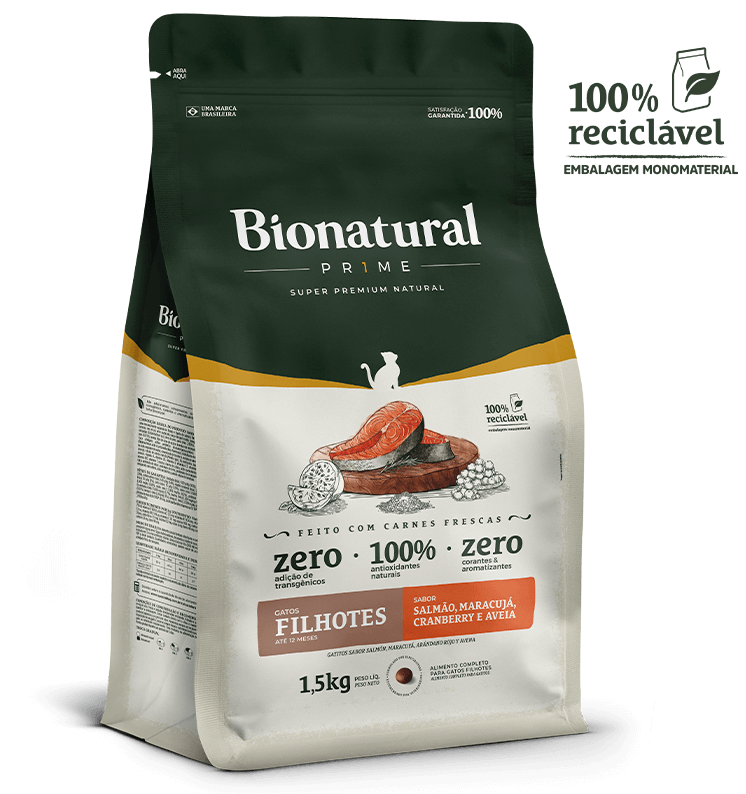 A Ração Bionatural Prime Gatos Filhotes Salmão é uma opção de alta qualidade para promover o desenvolvimento saudável dos gatinhos. Enriquecida com DHA, um nutriente essencial para o crescimento cognitivo, a Ração Bionatural Filhote estimula o aprendizado dos filhotes, ajudando a fortalecer o sistema nervoso e a capacidade de aprendizado. Desenvolvida por médicos-veterinários, sua fórmula não contém corantes nem aromatizantes artificiais, garantindo uma alimentação mais natural e segura para os pequenos felinos.