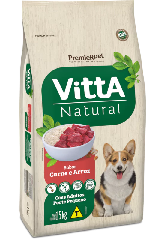 A linha Vitta Natural é formulada com proteínas de alta qualidade e é enriquecida com todas as vitaminas e minerais necessários para que os cães vivam saudáveis e felizes. Elaborado com ingredientes naturais e cuidadosamente selecionados, o produto Vitta Natural Adultos Raças Pequenas Seleção de Carnes e Arroz, além de muito saboroso, não possui corantes e aromatizantes artificiais. Promove também a saúde intestinal, através da associação de fibras naturais com prebiótico, e auxilia para uma pelagem bonita, pela presença do ômega 6.