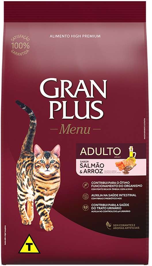 A Ração GranPlus salmão e Arroz para Gatos Adultos é indicada para gatos adultos que vivem em ambientes internos, com ingredientes selecionados e um correto processamento para satisfazer o exigente paladar dos gatos.